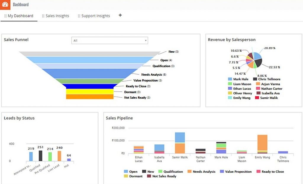 Performance insights and analytics. Visualize the health of the sales pipeline through accurate charts and tables. Real-time reporting with ability to export reports or charts quickly, and schedule automated periodic reports to save time.